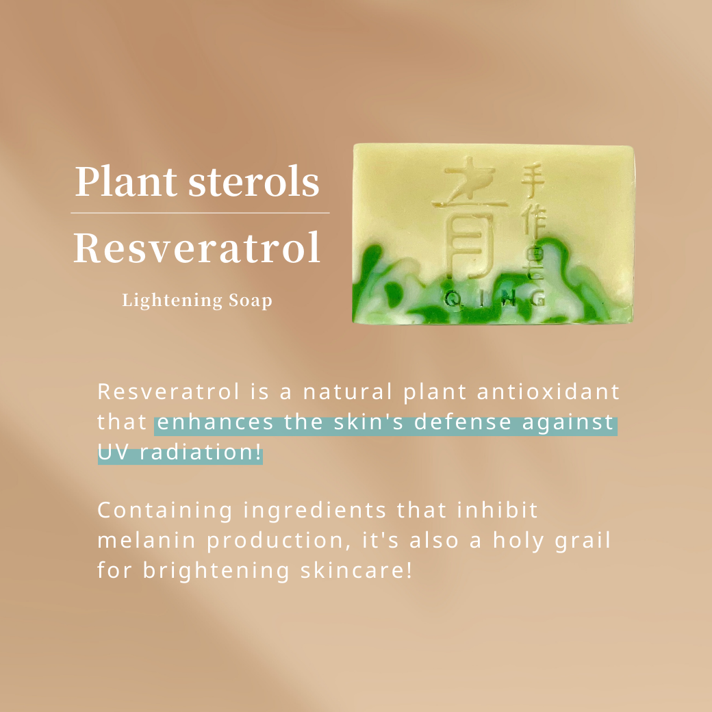 QING has cured her husband's dry, itchy skin with their "Plant Sterol soap!" The new "Resveratrol Lightening Soap" is out now! Essential soap for brightening skincare!