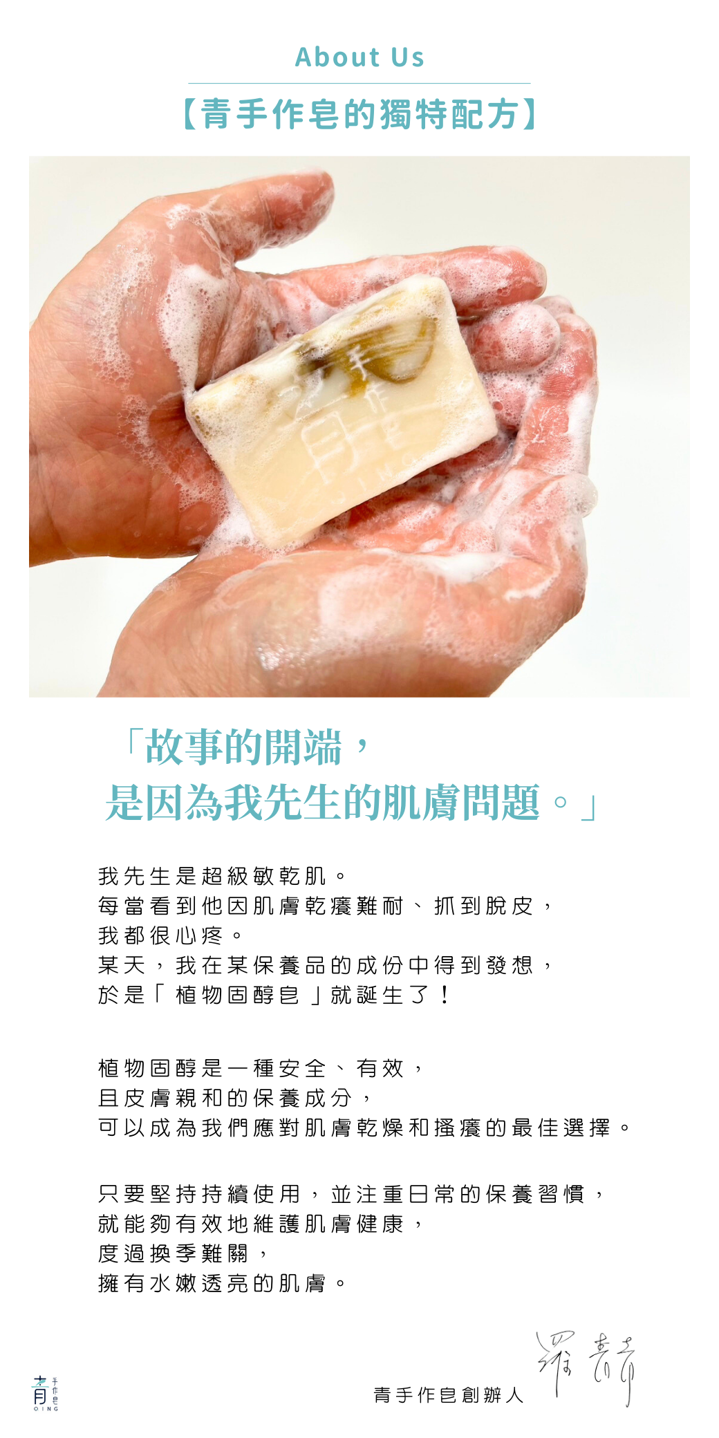 QING治好老公乾癢肌膚的「植物固醇添加 」系列手工皂,