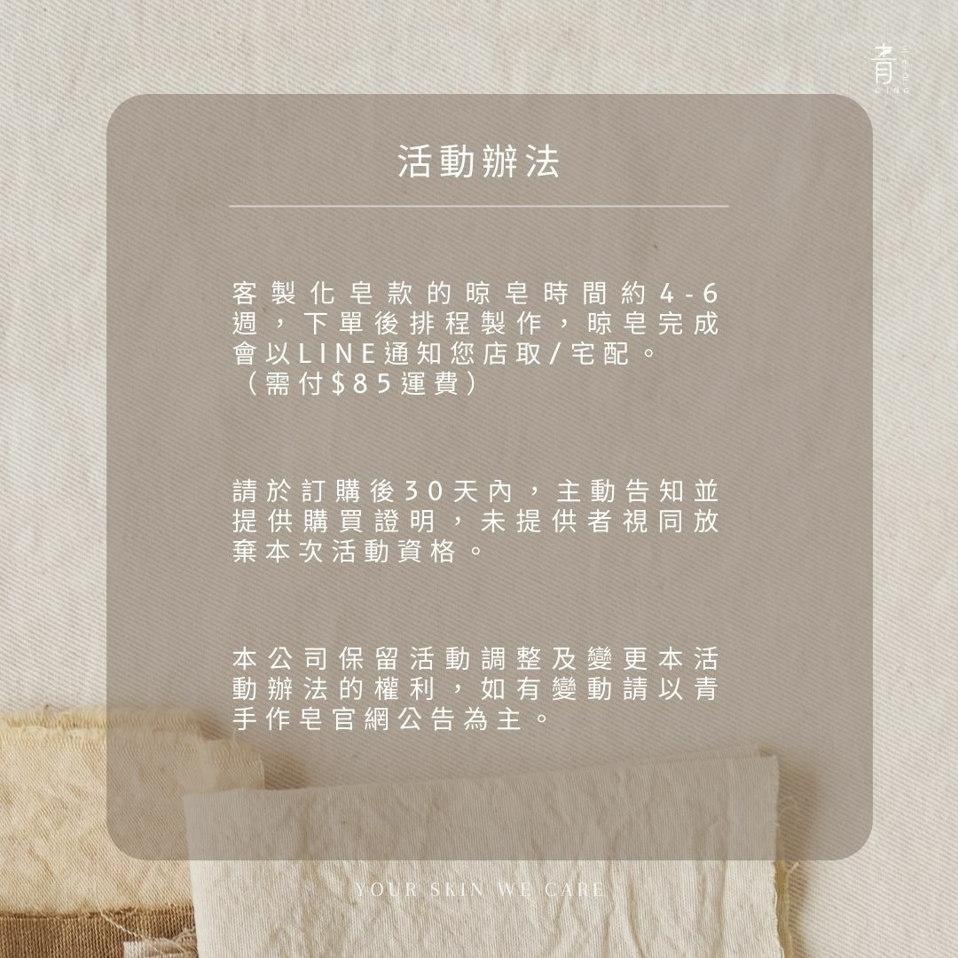 青手作皂在乎你的肌膚,免費客製化為你量身定做專屬於你的皂。